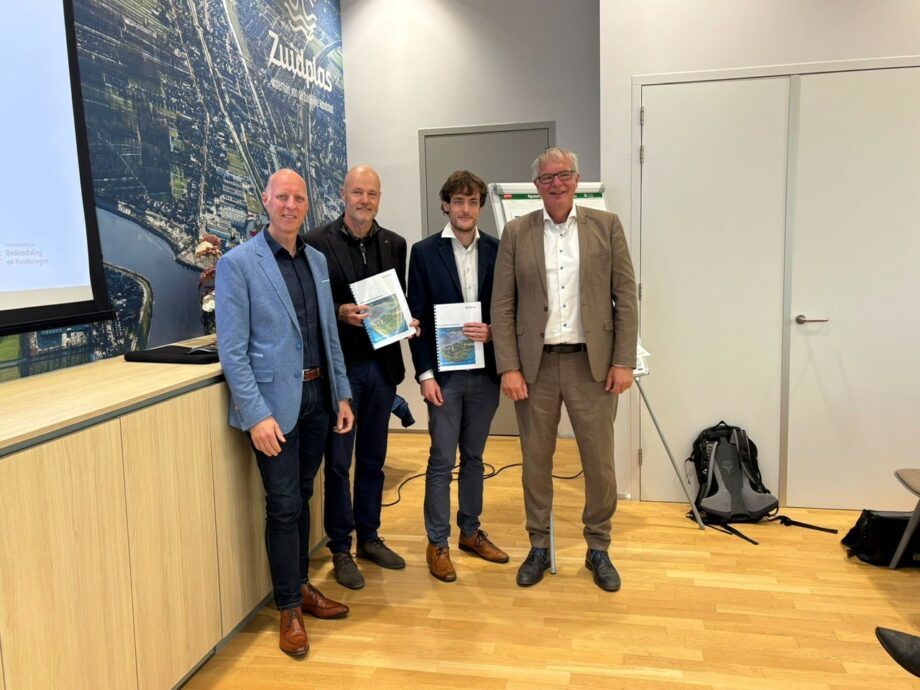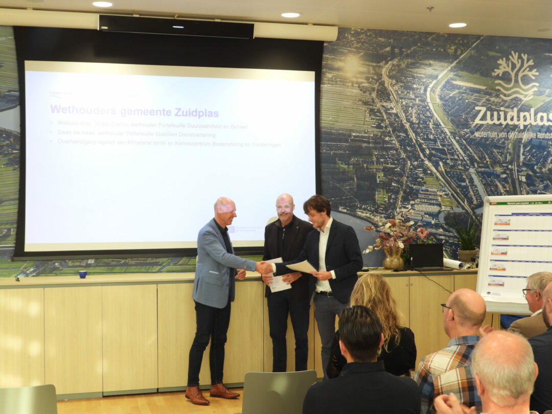 Op vrijdag 10 oktober kwam het lerend netwerk Bodemdalingbestendige Nieuwbouw bij elkaar op het gemeentehuis van gemeente Zuidplas voor een update van de kennisagenda & het actieplan 2025. Robert van Cleef nam samen met Rik Heinen van gastheren en wethouders Daan de Haas enWybe Zijlstra van de gemeente Zuidplas het studierapport van kennisinstituut Deltares over restzettingseisen en historische ervaringen voor woongebieden op slappe grond in ontvangst.