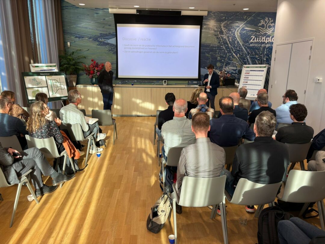 Naast een toelichting van het ministerie op de ontwikkelingen van de maatlat en restzettingseis gaven ook de zes van de aangesloten gebieden een update van hun eigen ontwikkelingen. De opgave van het project Kerkwetering werd als nieuwkomer in het netwerk door landschapsarchitect Ben Kuipers namens Gemeente Oudewater en door Dries Schuwer van HDSR gepresenteerd.
